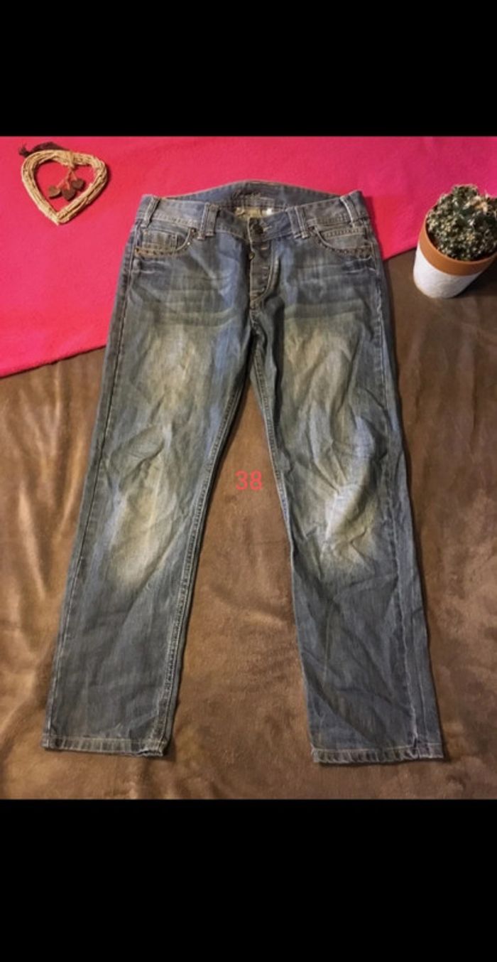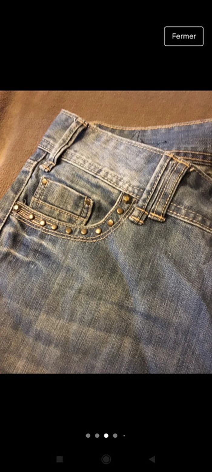 Jean effet délavé, finition faux clous. #jeantaille38 #jeanfemmemim38