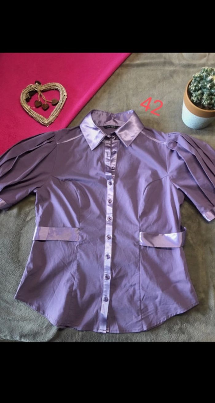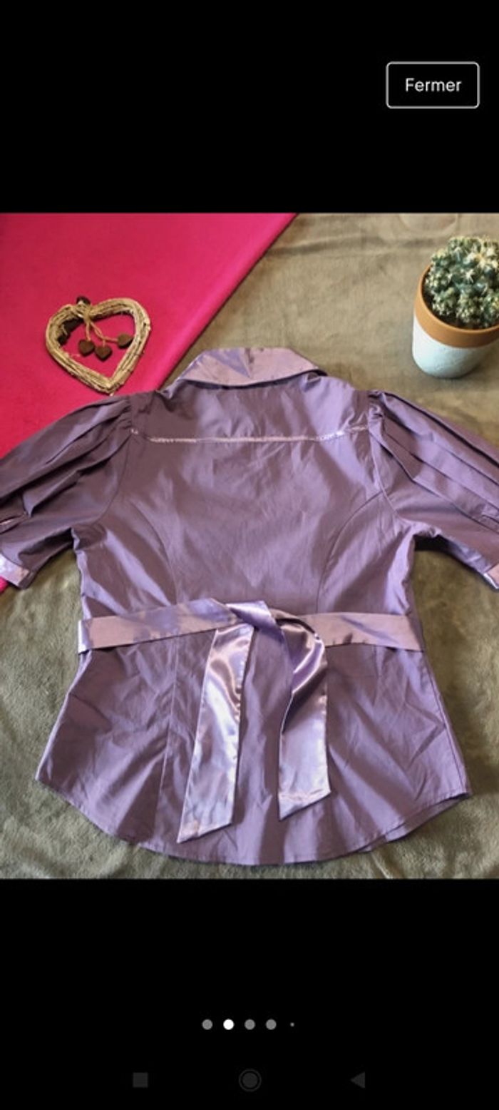 Chemisier/ blouse violet Ceinture à nouer dans le dos. #chemisierfemme #chemisier42femme #blousesatin