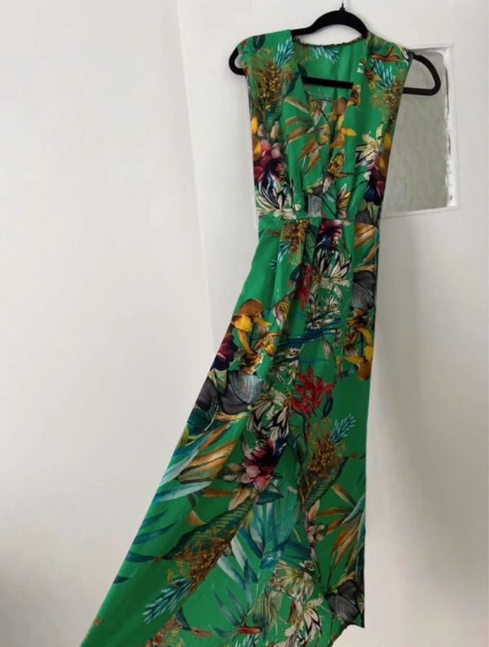 Robe effet cache-cœur qui s’attache par l’arrière Très fluide et agréable à porter Portée quelques fois, comme neuve Taille 38/M