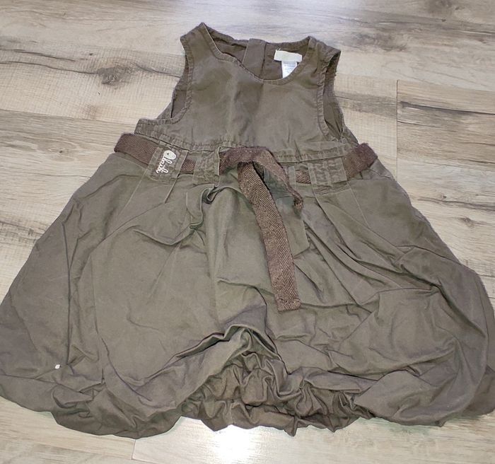 Vend cette jolie salopette fille taille 12 mois. Petite ceinture qui finit bien la robe. Fermeture éclair au dos pour faciliter l'enfilage.
