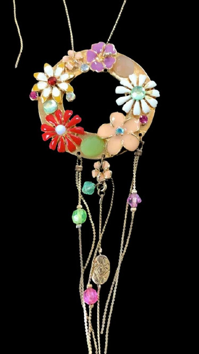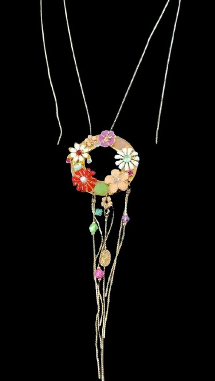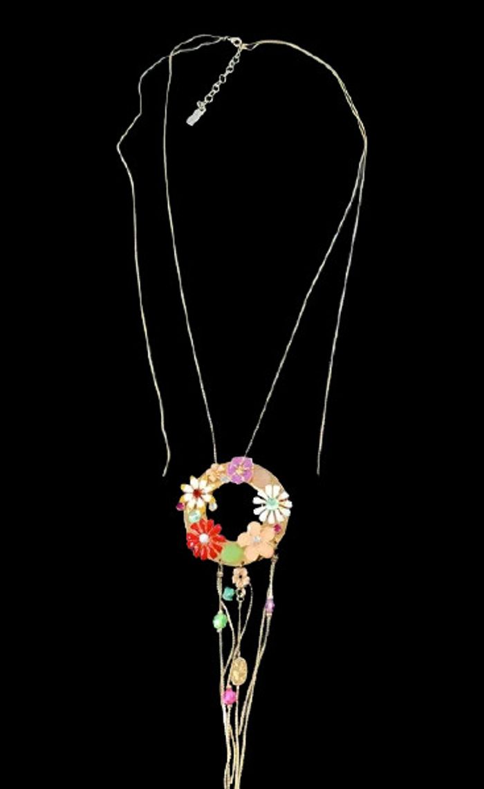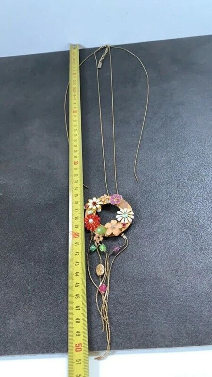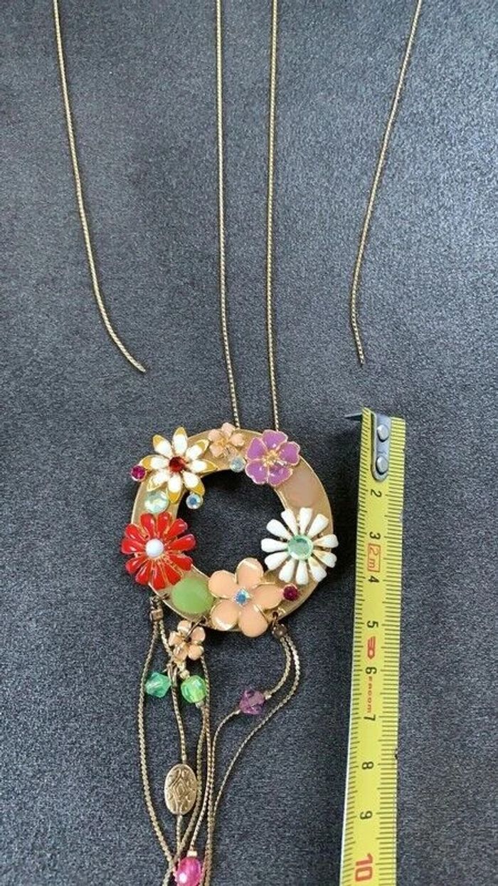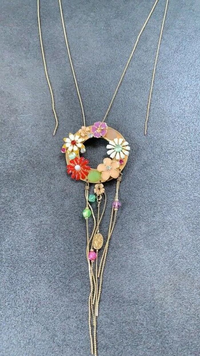 Collier fantaisie Sautoir Fleurs Morgan de toi Fleurs avec pendants et chaine qui pend sur chaque côté Dimensions sur photos