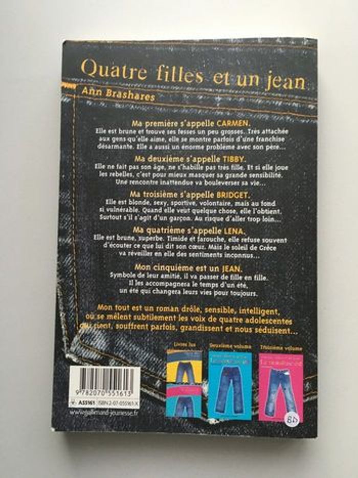 Quatre filles et un jean, livre de 309 pages. Auteur Ann Brashares - Editeur Gallimard. En très bon état.
