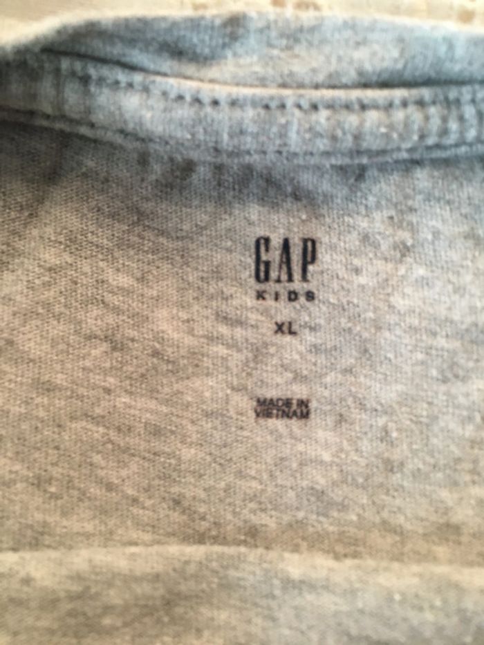 Tee-shirt fille coloris gris Ecriture GAP multicolore Noeud fantaisie à la base En très bon état, pas de trous, déchirures et taches