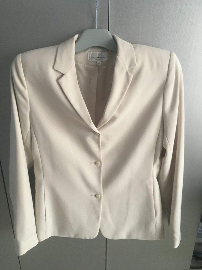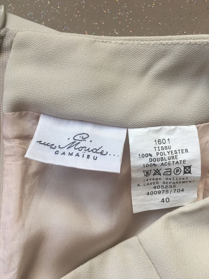 Jupe crème taille 40 de chez Camaïeu. Tissu 100% polyester, doublure 100% acétate Longueur 51 cm Faites un ensemble tailleur en associant cette jupe avec la veste (photo 5, même tissu et marque)