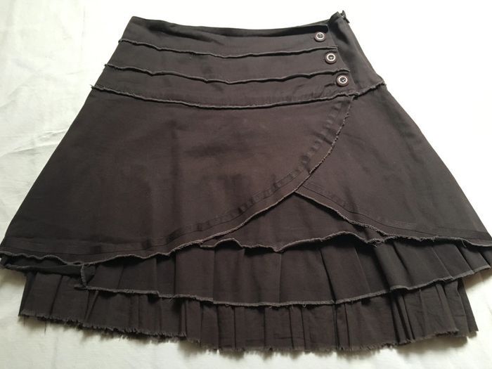 Jupe forme évasée à plusieurs étages, coloris marron. Hauteur 56 cm Etiquette de la marque manquante.