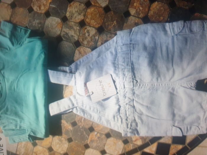 superbe ensemble salopette avec petit polo 6 mois marque brioche neuf étiquetées j porté