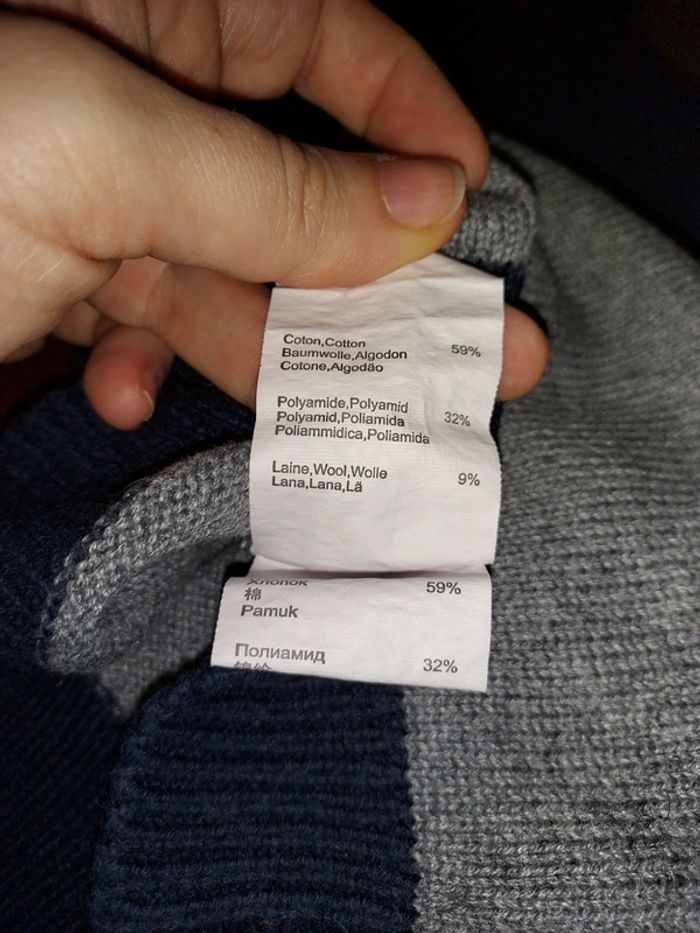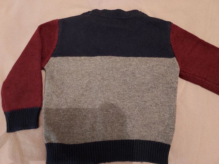 Gilet Jean Bourget gris, bordeaux et bleu marine. Contient de la laine. Très bon état, peu porté. Taille 2 ans. #sysasysa2ans