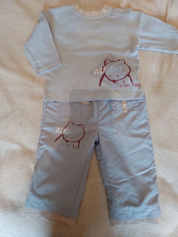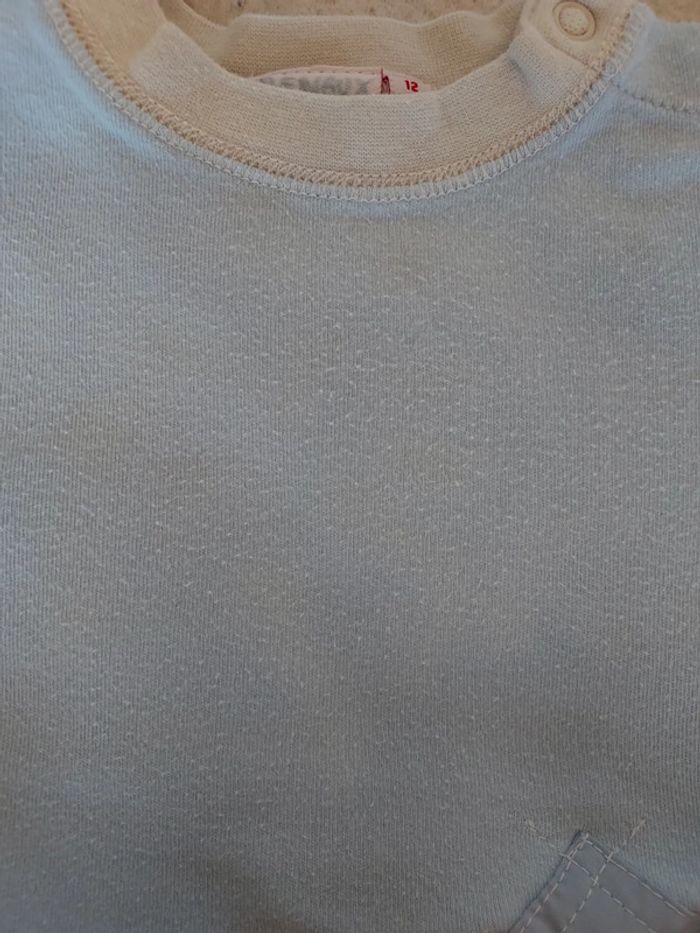 Pantalon chaud doublé polaire, taille 12 mois en très bon état. Jolis détails. J'offre gratuitement un t-shirt assorti car il a des auréoles d'anciennes tâches visibles sur la dernière photo. #sysasysa1an