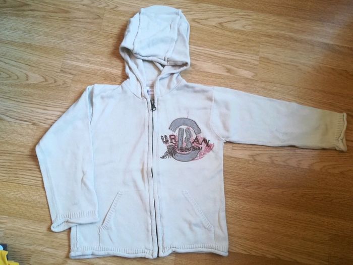 Gilet fin en coton avec manches retroussables. Beige. Taille 4 ans. De légères auréoles d'anciennes tâches peu visibles, montrées dans la dernière photo. #sysasysa4ans