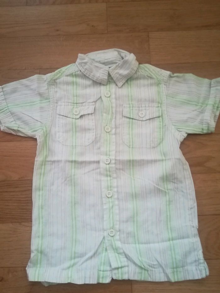 Chemisette en coton blanche, rayée vert, beige et turquoise. #sysasysa3ans #chemise #chemisette #ceremonie #cérémonie #3ans #36mois