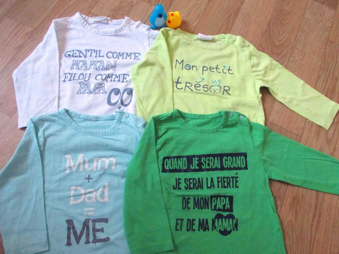 Lot de 4 t-shirts. Très bon état. Taille 12 mois. #sysasysa1an #tshirt #teeshirt #12mois #1an #jumeaux