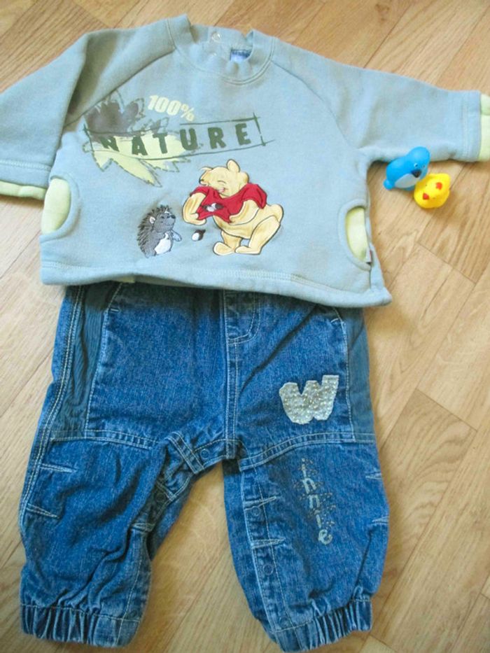 Très peu porté, comme neuf. Sweat pressionné dans le dos. Taille 12 mois. Le jean est disponible séparément dans mes annonces. #sysasysa1an #disney #winnielourson #winnie #winniethepooh