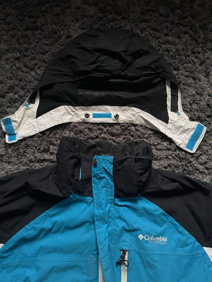 Veste Columbia Titanium taille XL 📸 Couleurs : bleu, noir et blanc 🔖 Condition : 9/10 ✅ Capuche modifiable 📌 N’hésitez pas à nous contacter pour plus d’informations 😉