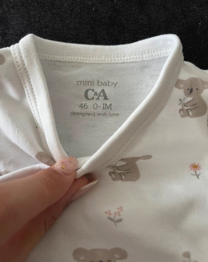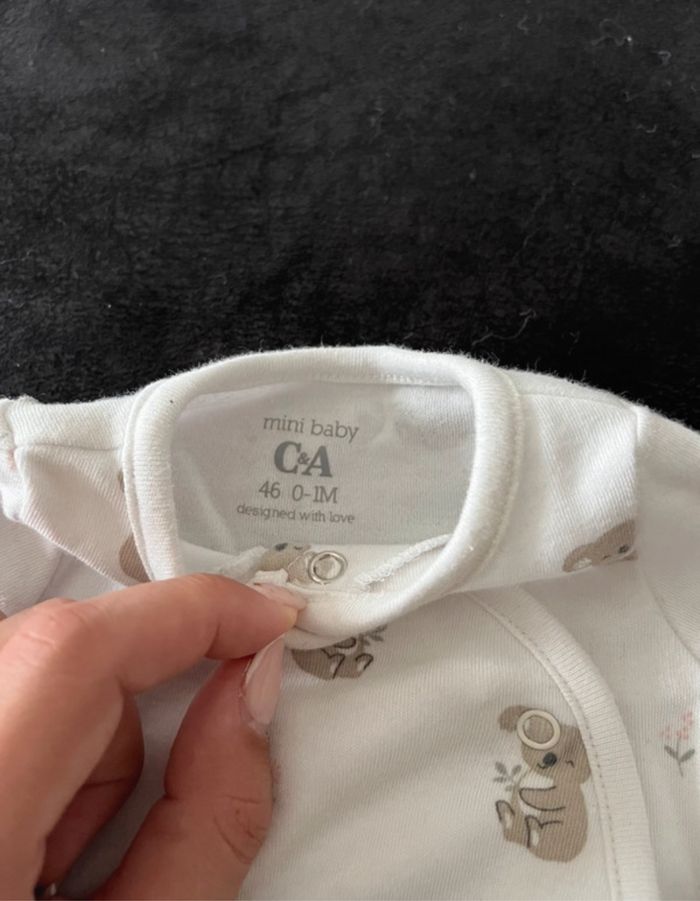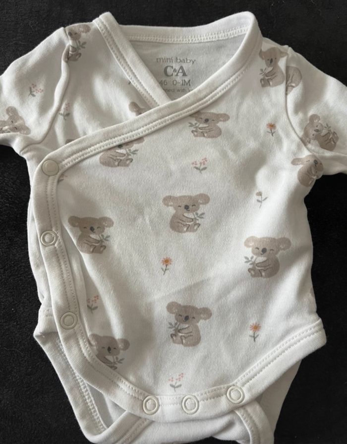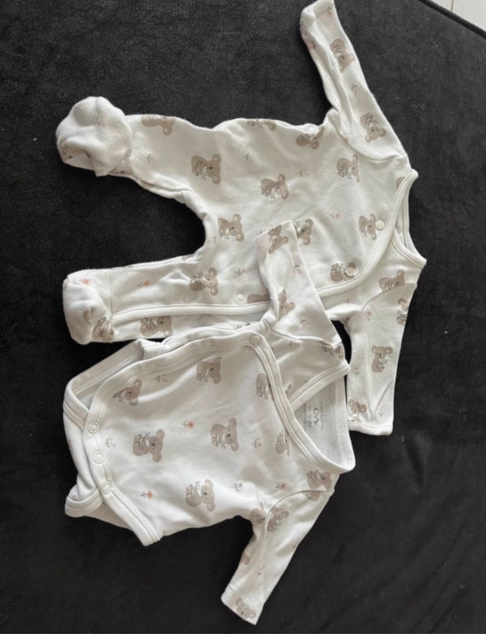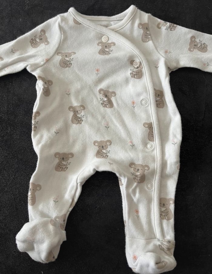 Ensemble 0-1mois pyjama + body koala blanc et beige. En très bon état