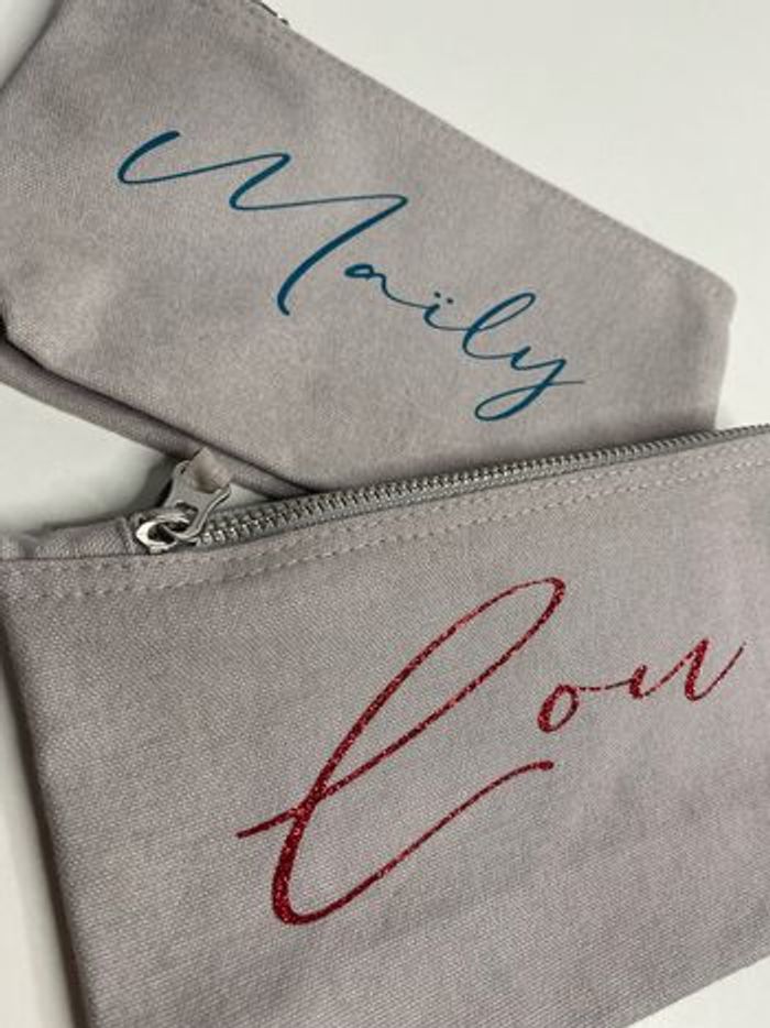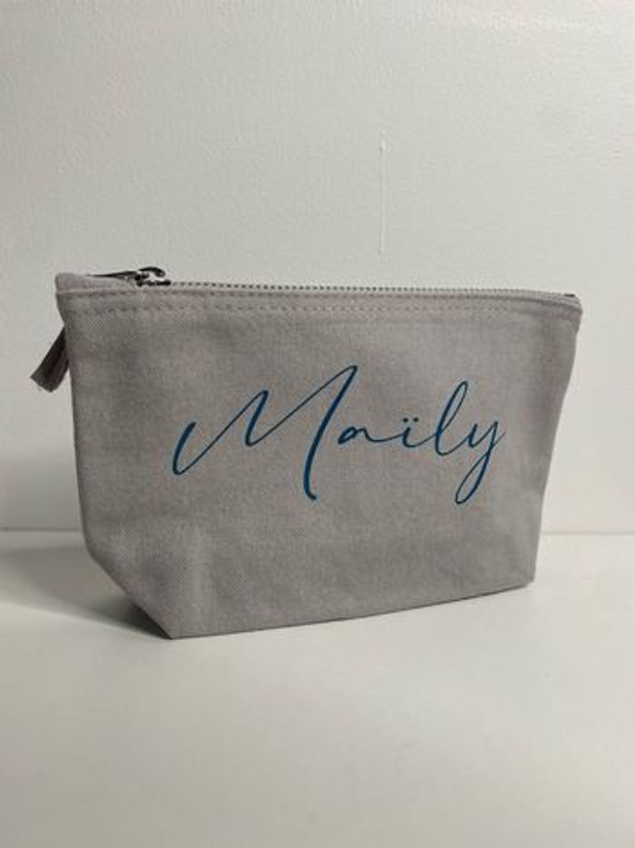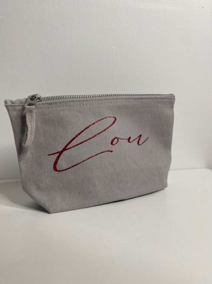 Pochette en coton format S à personnaliser 5 couleurs dispo : -gris -noir -blanc -naturel -rose Dimensions: 13cm x12,5cm x 6cm (Volume: 1 litre).