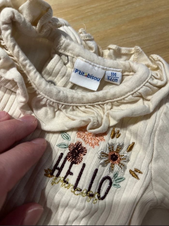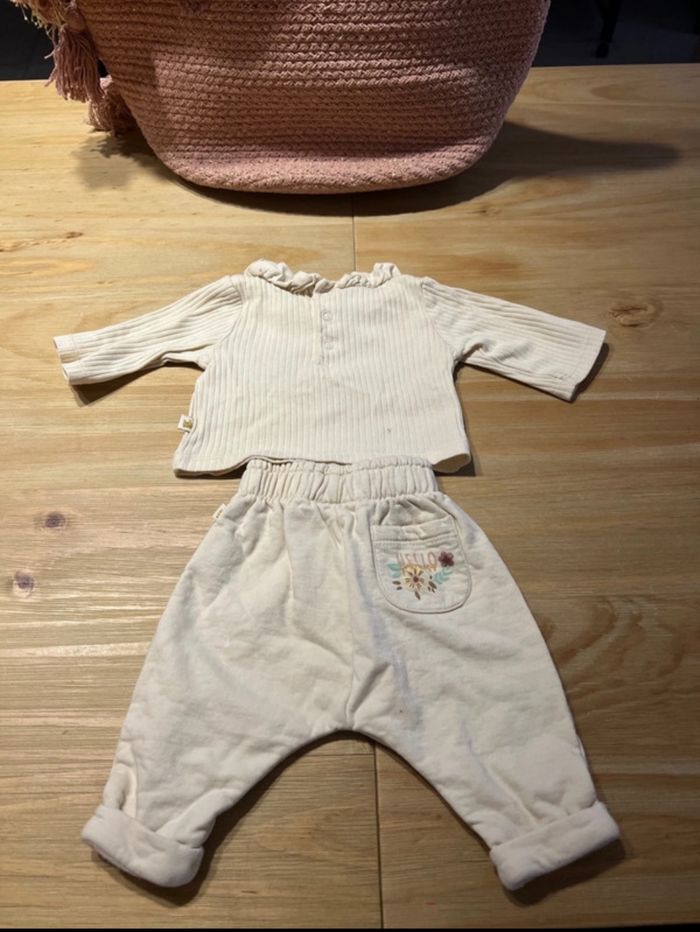 Ensemble marque P’tit bisous 1mois Pantalon bien chaud 100% coton Porté 2 fois