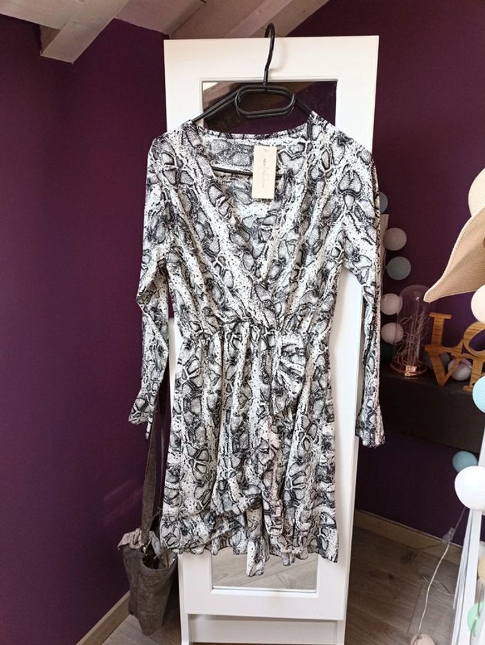 Robe où tunique imprimé serpent cache coeur noir et blanc - photo numéro 1