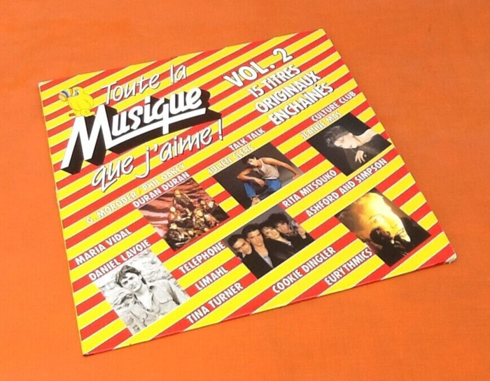 Vinyle 33 tours Toute la Musique que j' aime ! Volume 2 (1985) Vierge – 2606221 Duran Duran– The Wild Boys 4:14 Jeanne Mas– Johnny Johnny 4:15 Les Rita Mitsouko– Marcia Baila 4:30 Talk Talk– Such A Shame 3:59 Ashford & Simpson– Solid 3:59 Tina Turner– Private Dancer 3:54 Eurythmics– Sex Crime (Nineteen Eighty Four) 3:57 Limahl– The Never Ending Story 3:32 Julien Clerc– Melissa 2:55 Culture Club– Love Is Love 3:50 Daniel Lavoie– Ils S'aiment (Nouvelle Version) 5:10 Maria Vidal– Body Rock 4:07 Cookie Dingler– Faut Pas Rêver 3:35 Giorgio Moroder / Phil Oakey*– Together In Electric Dreams 3:52 Téléphone– New York Avec Toi 2:23