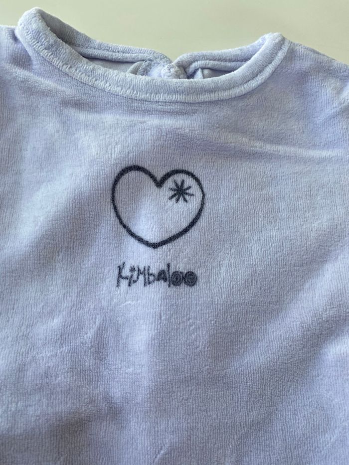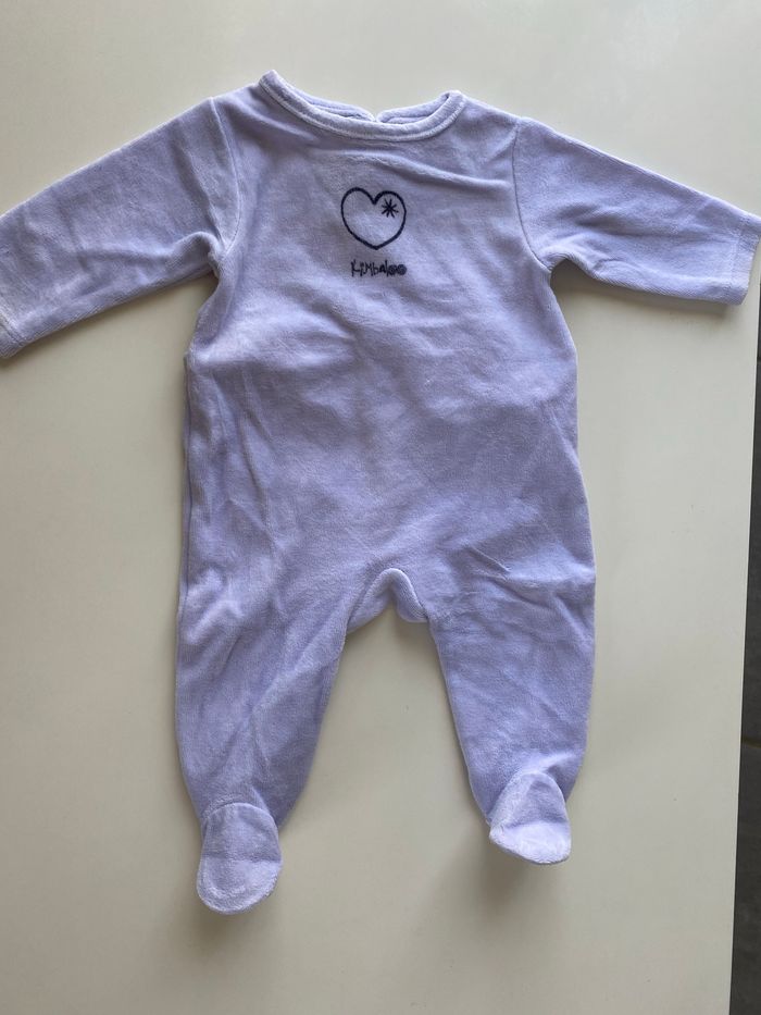 Joli pyjama velours mauve, marque Kimbaloo, taille 1 mois, très bon état, peu porté, aucune tache