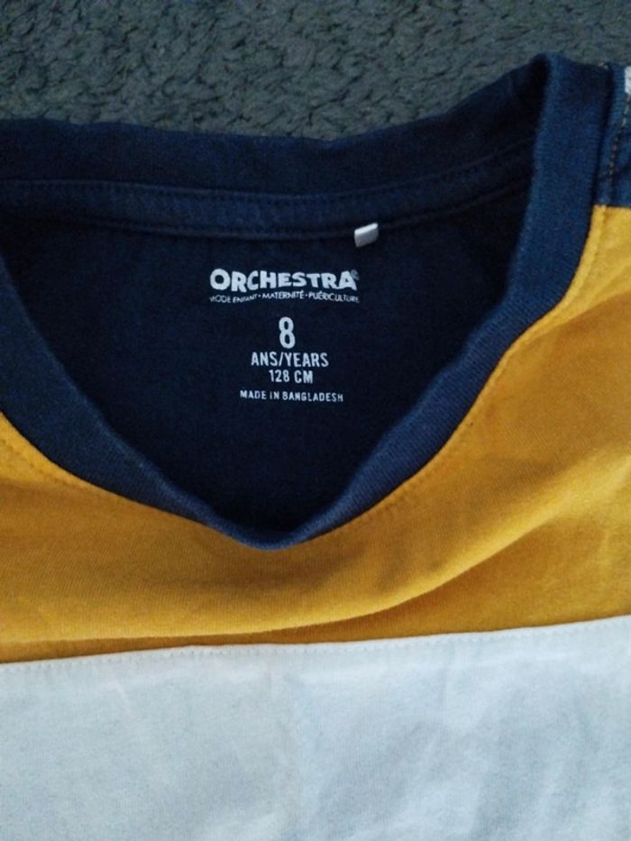 Lot 8 ans 1 gilet orchestra 1 t-shirts manches courtes orchestra 2 t-shirts manches courtes tape à l' oeil. Tout en très bon état.
