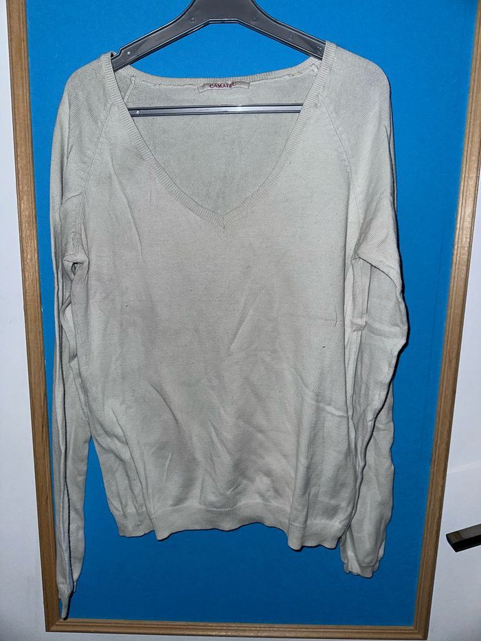 Pull col v, excellent état, marque camaieu, couleur crème, taille s. De large 41 cm, longueur 55 cm Lavé repassé avant envoi 😊 #femmekay57070 #femmetaille36 #camaieu