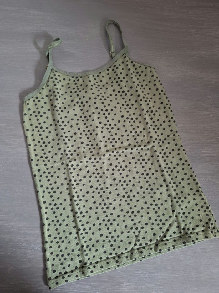 FILLE 12 ANS N°230 debardeur Vert/ pois noir Bretelle réglable 95% coton 5 % elasthane Taille 12 ANS Zeeman 1€ #kelly_fille12ans