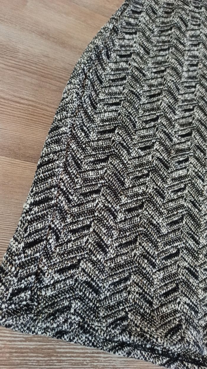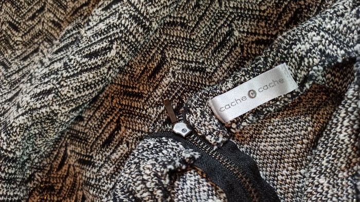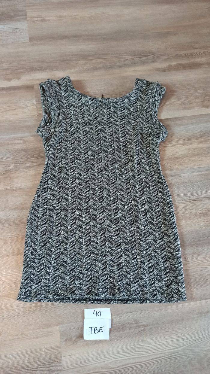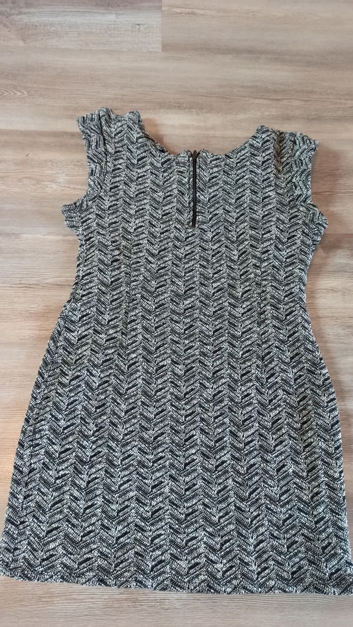 Jolie robe femme Marque cache cache Taille 40 Couleur gris, noir avec touche doré effet pailleté Pour soirée Doublée, tissu un peu epais, chaud En TBE