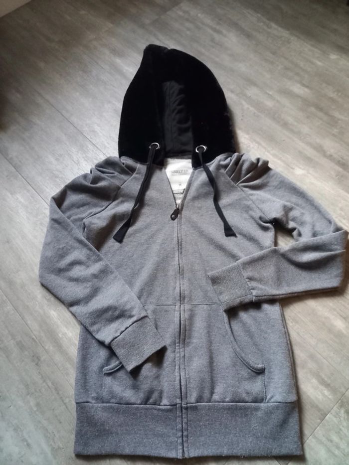 Veste a capuche Jennifer Taille M Grise Capuche noire moumoute Très bon état