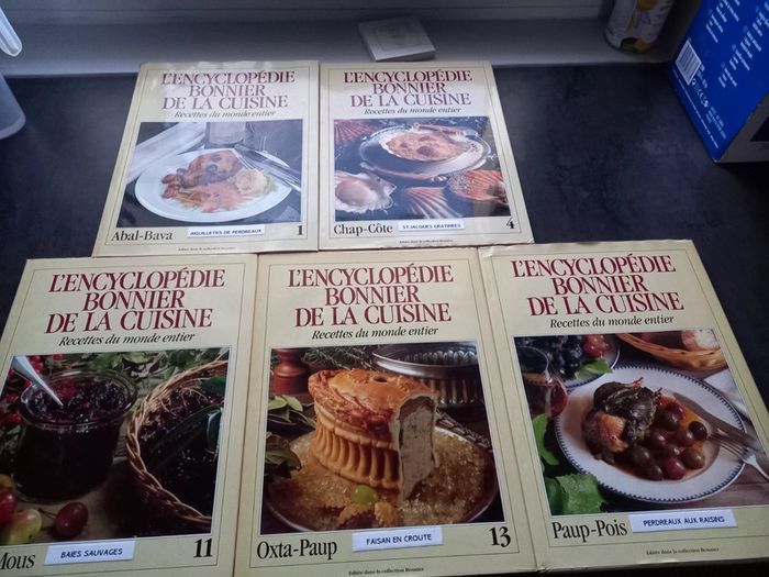 Lot de 5 livres de cuisine Encyclopedie Bonnier de la cuisine Numéros : 1,4,11,13,14 Très bon état
