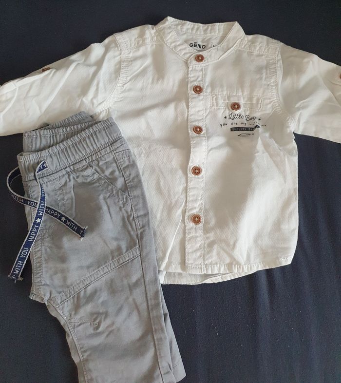 Ensemble GEMO garçon taille 3 mois Pantalon gris + chemise manches longues blanche