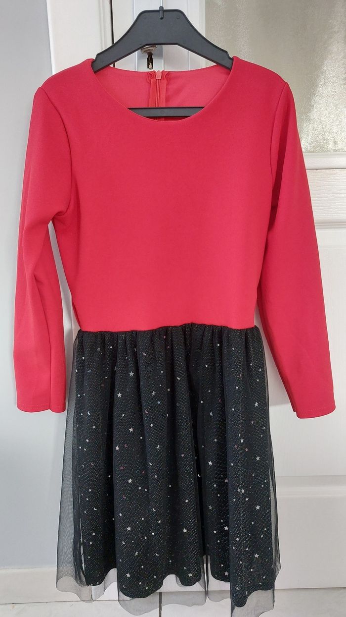 Robe fille rouge dessus et en dessous noir avec des etoiles dessus avec comme un tutu