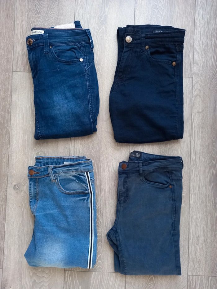 Lots de 4 pantalons bleu - 1 stradivarius - 1 zara - 1 shein avec trous et rayures sur le côté - 1 purple & pink Certains sont notés 38 MAIS taille à plat 36 cm pour tous 🍀Vendu aussi séparément dans mon dressing 🍀