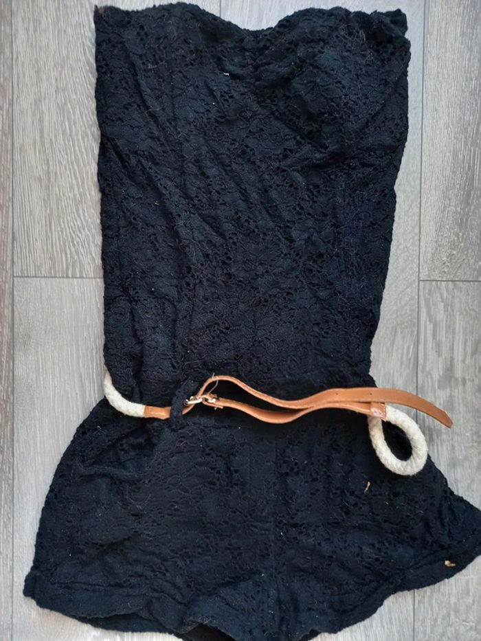 ◇Combi short bustier ◇ Noir à dentelle ◇Coque pour la poitrine ◇Ceinture à la taille