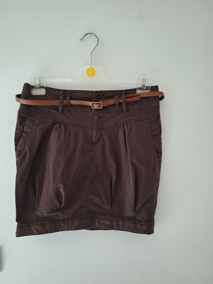 FEMME 38 / M N°1542 jupe marron Ceinture fin Marron clair Longueur 40 cm 97% coton 3% elasthane Taille 38 / M Neuf plus d étiquette 🏷 Cache cache 10,50€ #kelly_femmeT38