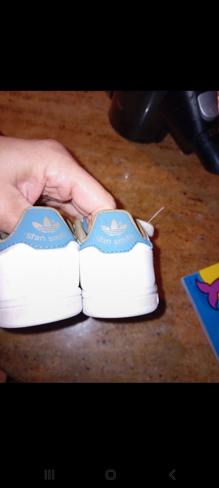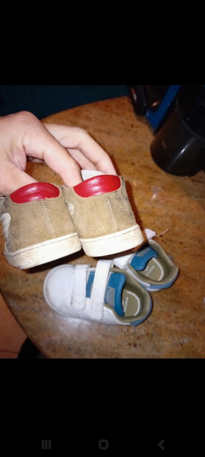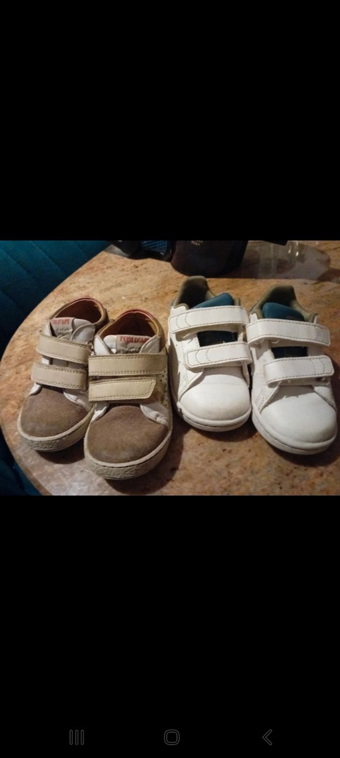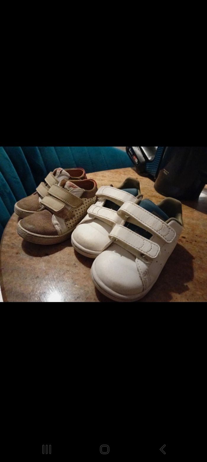 Lot de 2 paires de chaussures 1 paire adidas taille 20 blanche et bleue Achetee 50 euros 1 paire pom d api achetee 136 euros taille 21 Les 2 paires sont en bon état voir les photos.