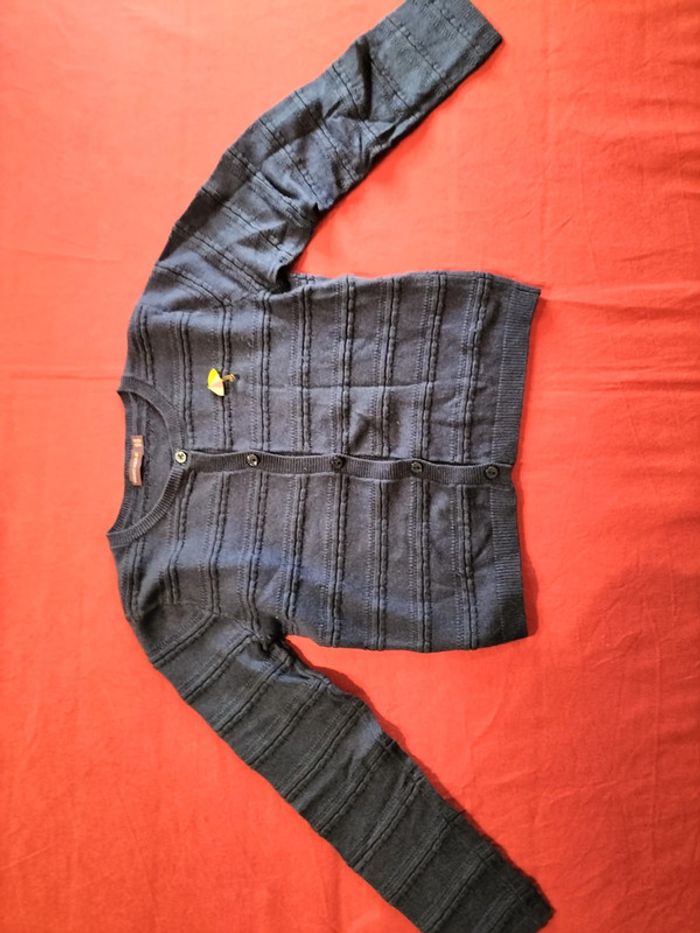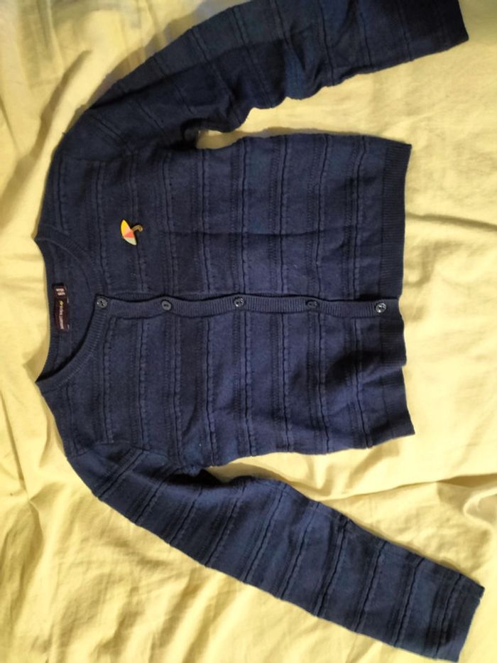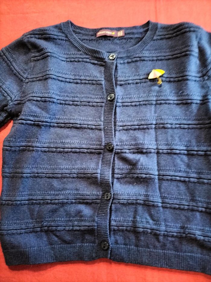 Gilet bleu marine manches longues avec un parapluie à couleur sur le devant et à boutons avec le bouton de rechange présent en 6 ans de la marque Sergent Major en parfait état aucun trou ni tâche(cf voir photos) #bouriquet79fille6ans
