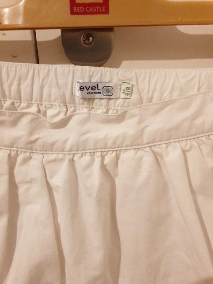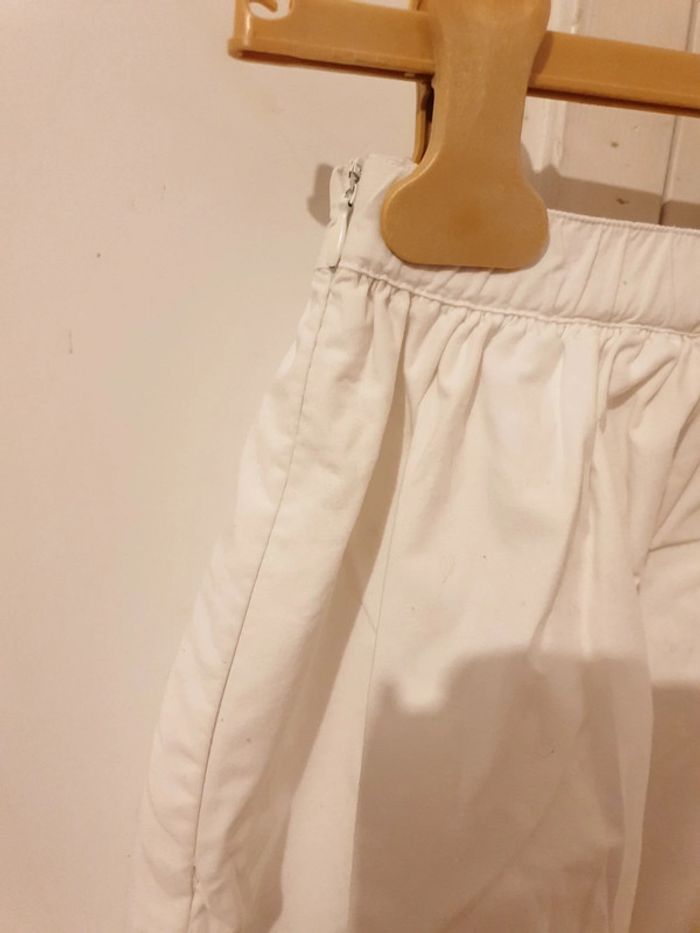 Portée quelques fois. Très bon état. 3 fleurs en tissu. Fermeture éclair et taille élastique. 100% coton.