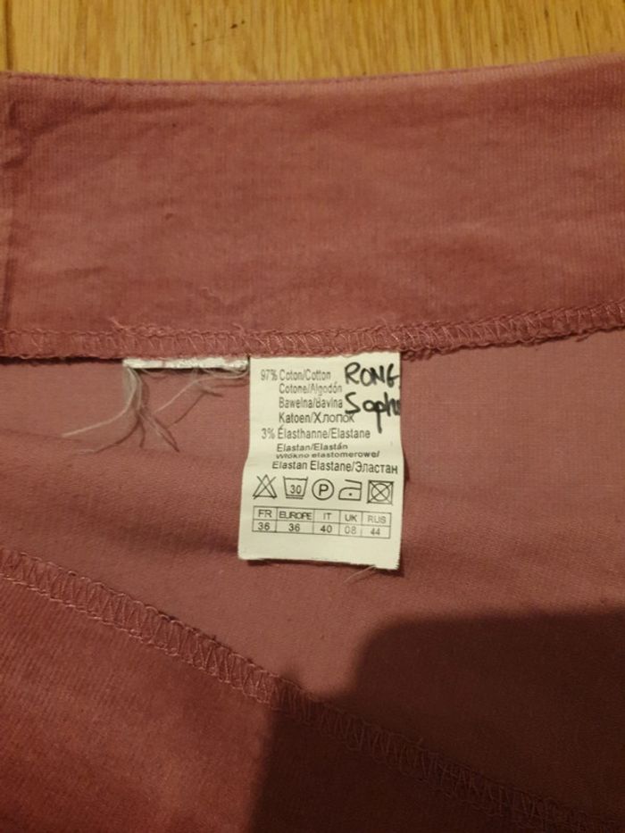 Portée quelques fois. Velours côtelé fin vieux rose. 97% coton.