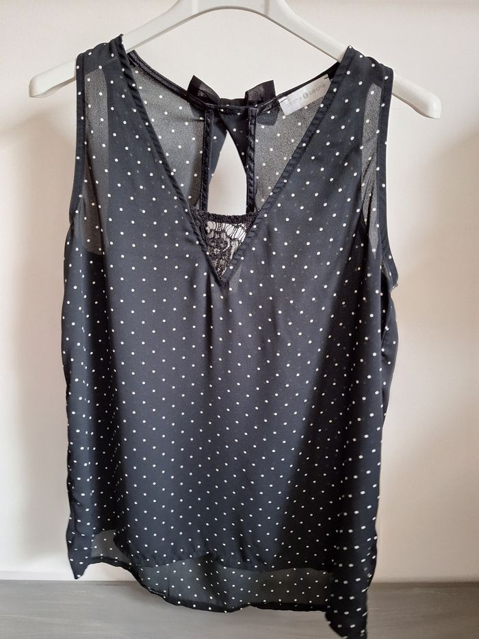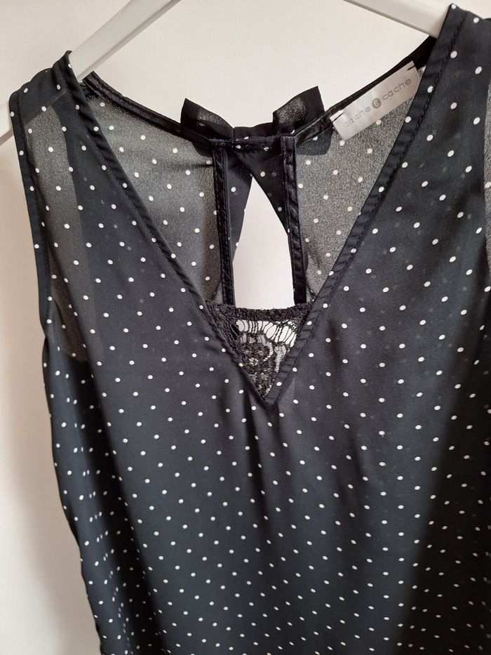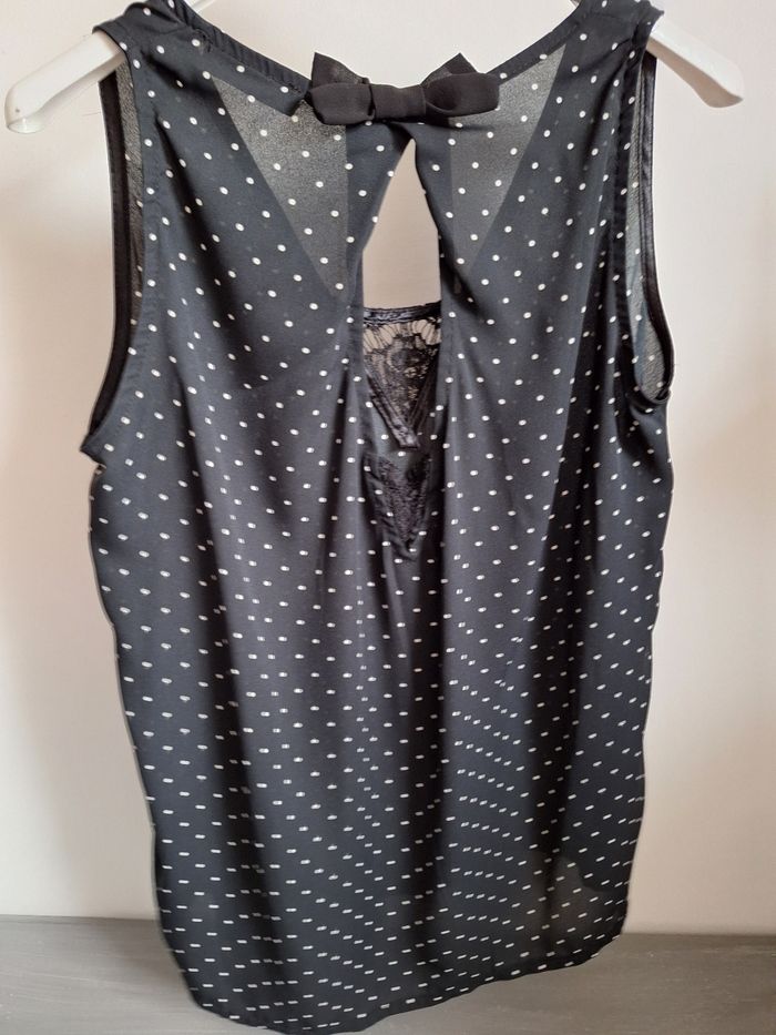 FEMME 36 / S N°1539 debardeur noir Pois blanc , en voile Broderie , noeud au dos 100% polyester Taille 36/ s Cache cache Neuf plus d étiquette 🏷 10€ #kelly_femmeT36