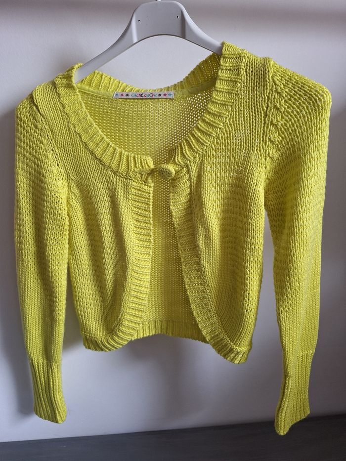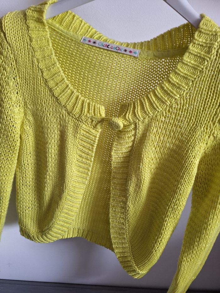 FEMME 36 / S N°1574 gilet jaune Bouton 100 % acrylique Longueur 44 cm Taille 36 / s Neuf plus d étiquette 🏷 Cache cache 15€ #kelly_femmeT36