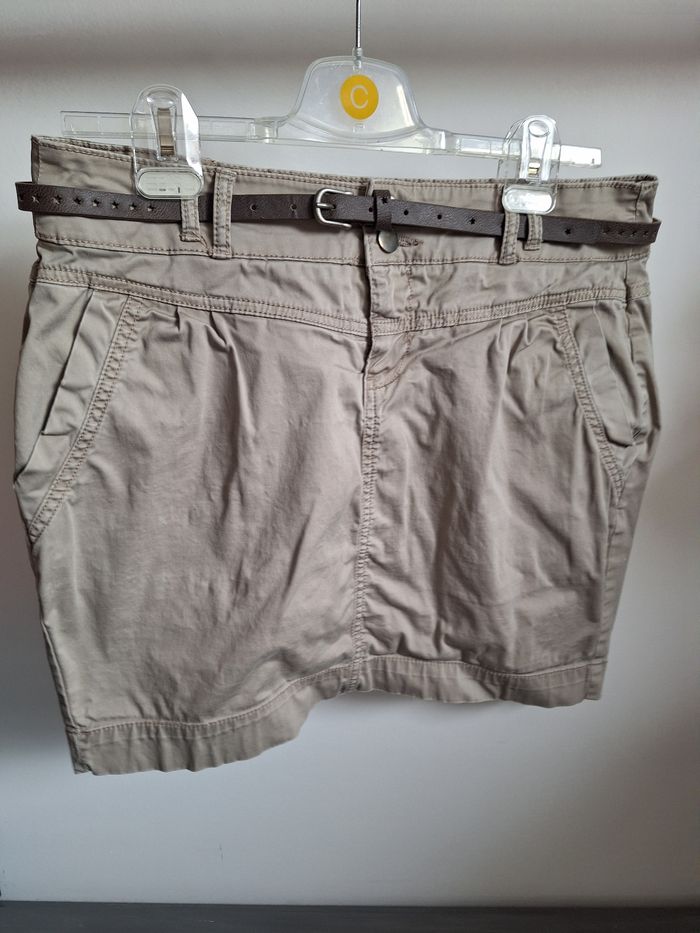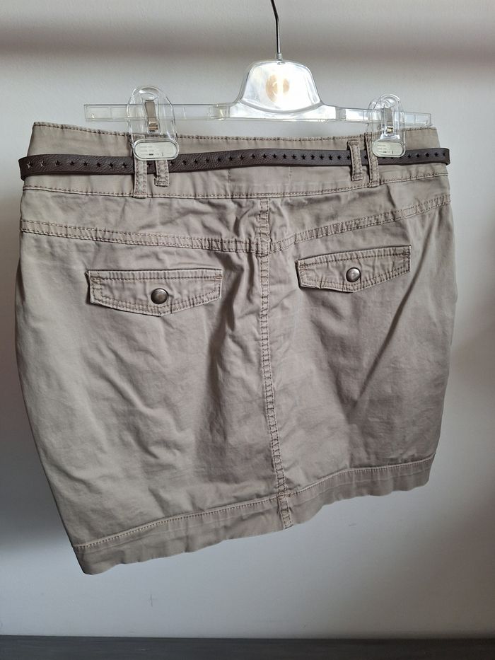 FEMME 40/ L N°1561 Jupe taupe Ceinture marron Taille 40 / L Longueur 43 cm 97 % coton 3% elasthane Cache cache 10,50€ #kelly_femmeT40