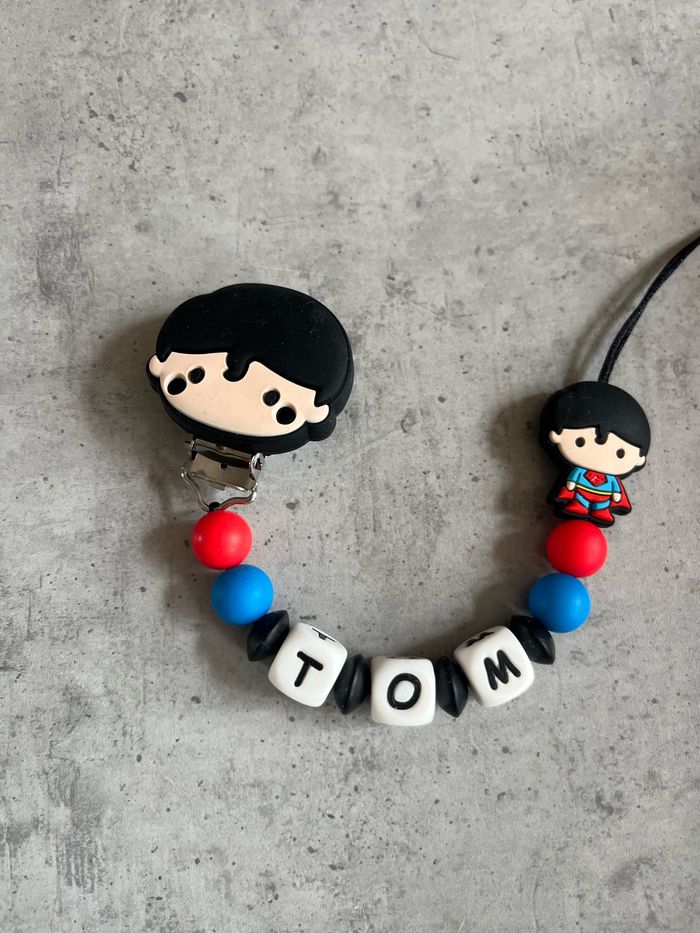 Attache tétine personnalisé en silicone ou en bois au souhait de l’acheteur . Personnalisable au choix de l’acheteur que ce soit la couleur comme le prénom ou le thème . Le fil est doublé pour plus de sécurité tout le long de l’attache tétine. N’hésitez pas à me demander et regarder mon dressing. Une photo vous sera envoyée avant l’expédition pour vous ayez un aperçu du rendu. Tous les produits sont réalisés avec du materiel spécial conçu aux bébés , enfants.