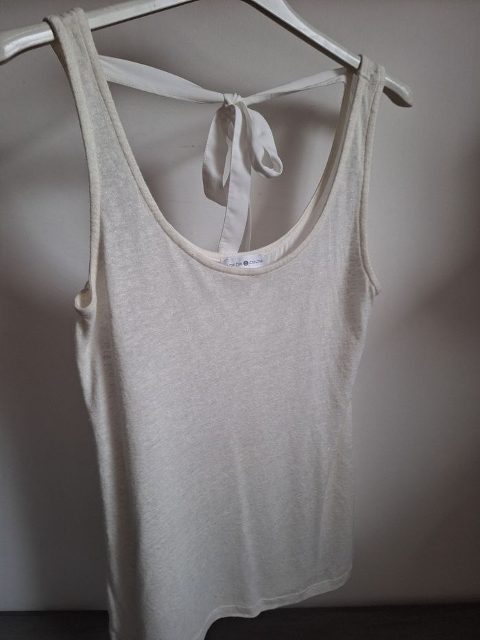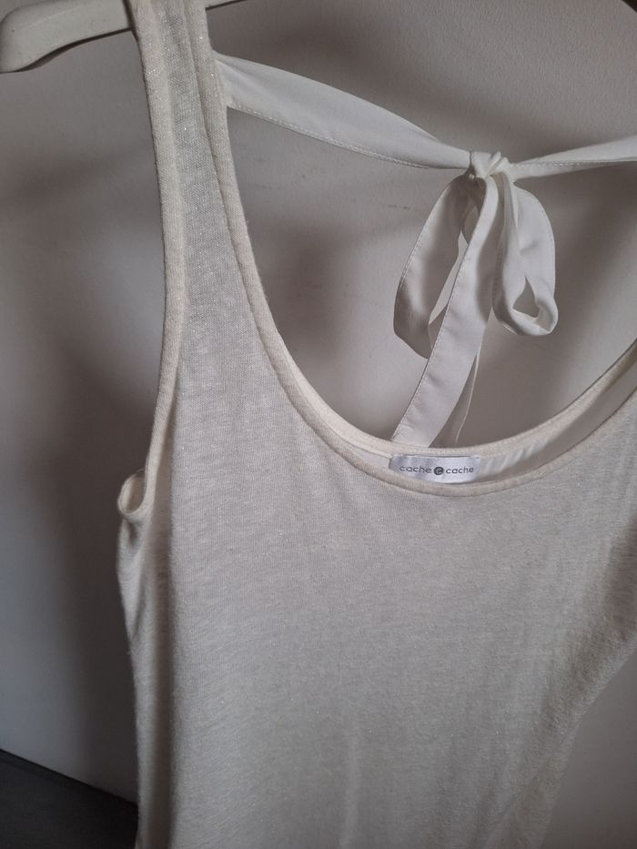 FEMME 36 / S N°1578 debardeur 2 matières Blanc ecru , paillette argenté ( devant) Noeud au dos Taille 36 / s Cache cache 5,50€ #kelly_femmeT36