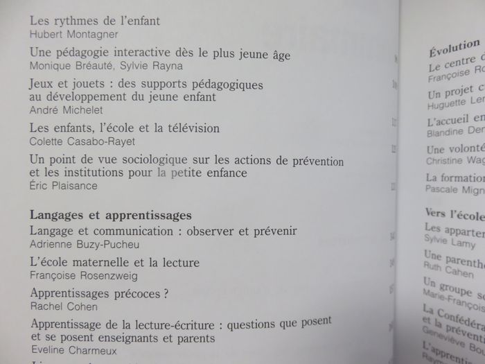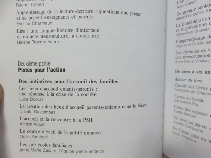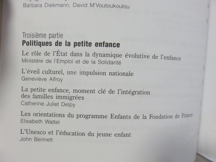 💰 PRIX FIXE ⚠️ ÉTAT : Très bon état ⚠️ DÉTAILS : Auteur(s) : GPLI, Collectif, Ministère Emploi et Solidarité Editeur : La Documentation Française Date de parution : pages ⚠️ RÉSUMÉ : L'éveil du jeune enfant, dans son environnement familial et social, est aujourd'hui au cœur des préoccupations de ceux qui travaillent dans ce domaine. Cet ouvrage se penche sur le développement des jeunes enfants, de la naissance à six ans. Il propose un état des recherches, des exemples nombreux d'initiatives concrètes et un tableau d'ensemble des politiques menées en faveur de l'éveil culturel de tous les enfants. Les lecteurs y retrouveront l'esprit qui a fait le succès de la première édition en 1992. Mise à jour et augmentée, cette nouvelle parution intègre une quinzaine de nouvelles contributions témoignant de l'évolution des pratiques et des dispositifs. Cet ouvrage illustre l'idée qu'il est urgent d'agir très tôt, grâce à une large mobilisation des professionnels de la petite enfance et de leurs partenaires. L'échec scolaire n'est pas inéluctable. Se donner les moyens d'y parer relève d'un véritable choix de société. C'est ce qu'affirme le Groupe permanent de lutte contre l'illétrisme depuis sa création. Sommaire Etat de la recherche L'entrée dans la vie L'entrée dans le groupe Langages et apprentissages Pistes pour l'action Des initiatives pour l'accueil des familles Vers l'école : passerelles, relais, ouvertures De zéro à six ans, l'accès à la culture Politiques de la petite enfance. 📦 LIVRAISON : Envoi ou remise en main propre sur Lyon