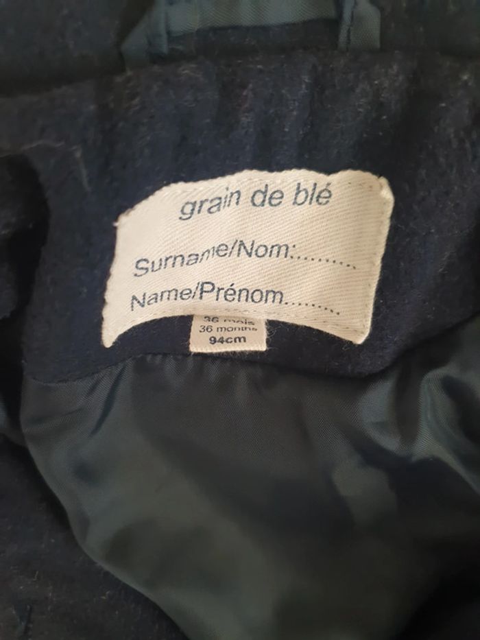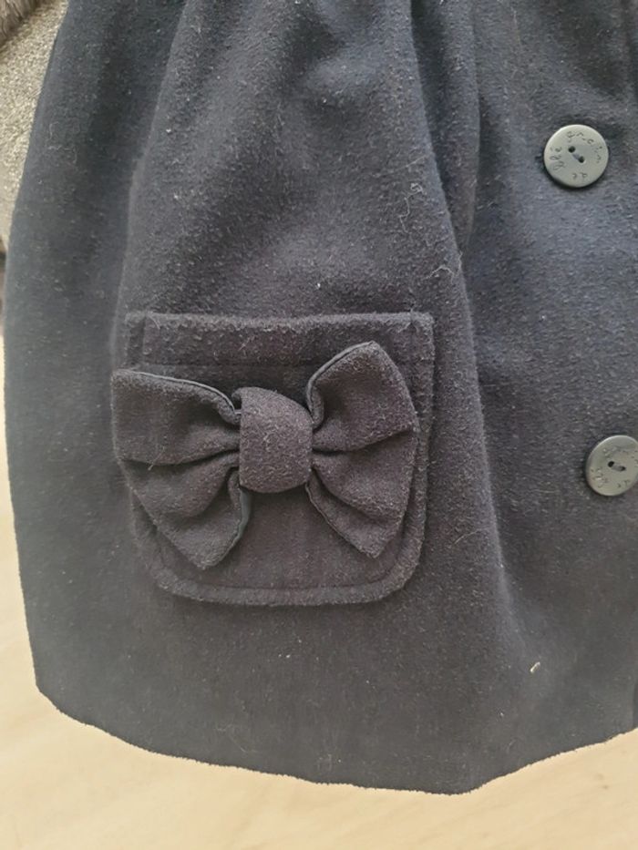 Usure liée aux frottement. Petites bouloches Fermeture par boutons 2 poches décoration avec petits noeud(voir photo) Bleu marine foncé