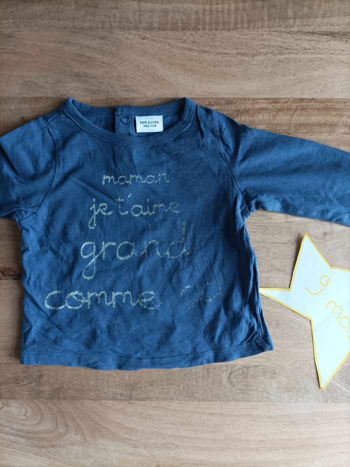 Tee-shirt manches longues 9 mois sous pull maillot de corps Maman je t aime grand comme ça Tape à l'oeil