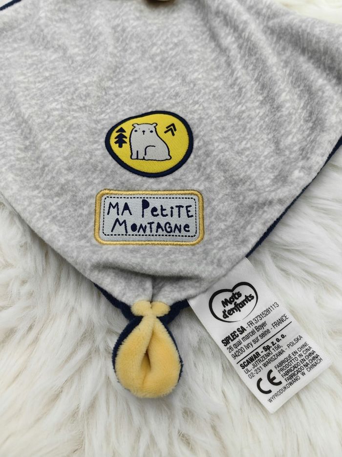 Doudou plat Ours avec cape gris bleu marine et jaune Ecusson avec ours et sapin et un autre avec écrit Ma Petite Montagne Marque : Mots d'enfants E. Leclerc État : Parfait état Vous achetez le doudou que vous voyez. Entièrement vérifié. 🔍Une recherche particulière ? Tout n'est pas en ligne, n'hésitez pas à me contacter 😊 🛒Plusieurs articles vous intéressent ? Contactez moi afin que je créé l'annonce 😉 #VDR_A19 #VDR_OURS #VDR_MOTSDENFANTS Mots-clés : Doudou, comforter, knuffel