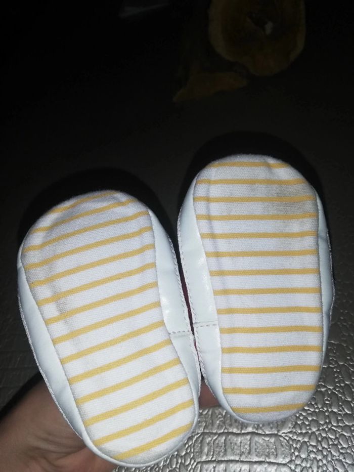 Bordeaux Gemo 6/12 mois Une trace sous la chaussure (à droite sur la photo des semelles)