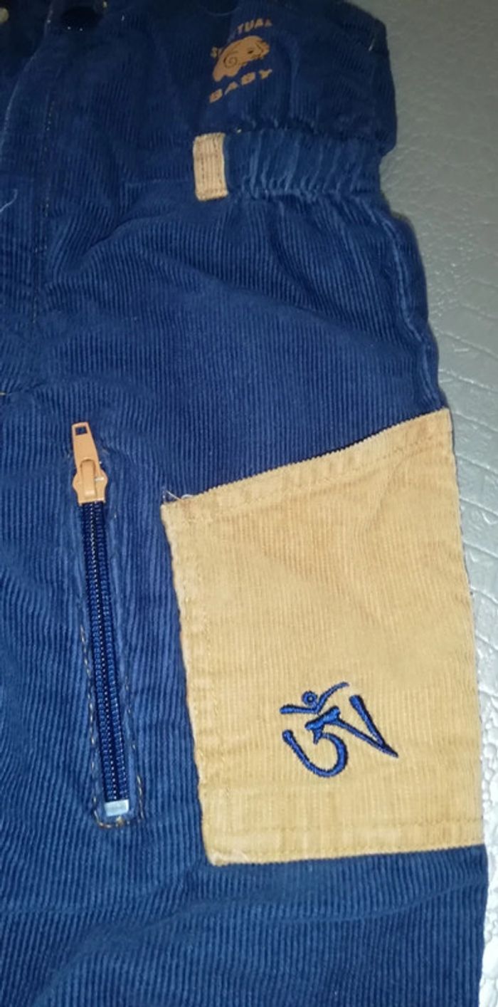 Pressions au pantalon pour faciliter le change Bleu nuit et moutarde