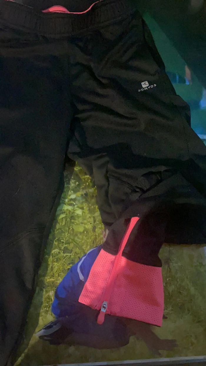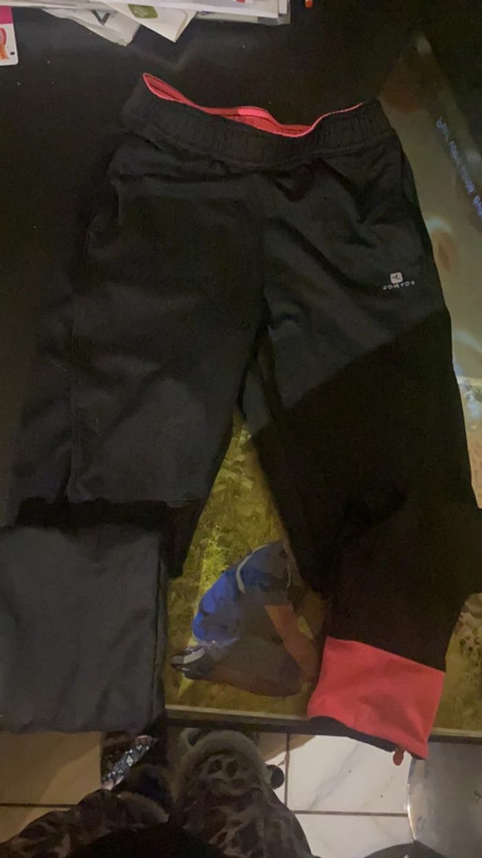 Jogging fille noir et rose fluo avec poche et zip au cheville léger acheter à décathlon marque domyos taille 8/9 ans en bon état
